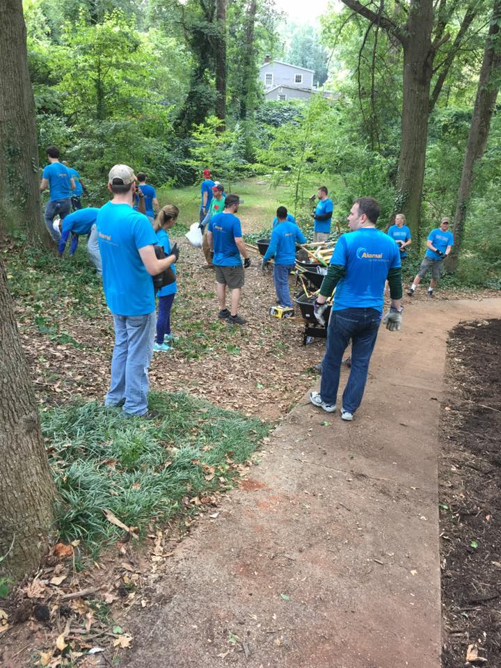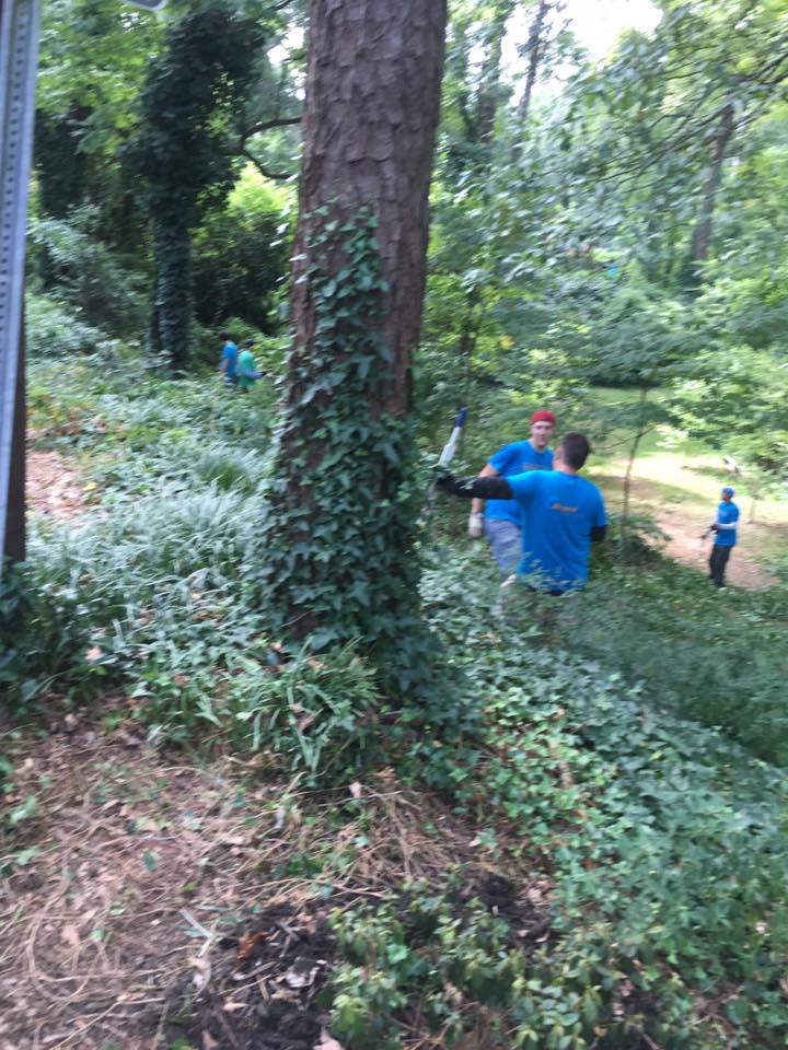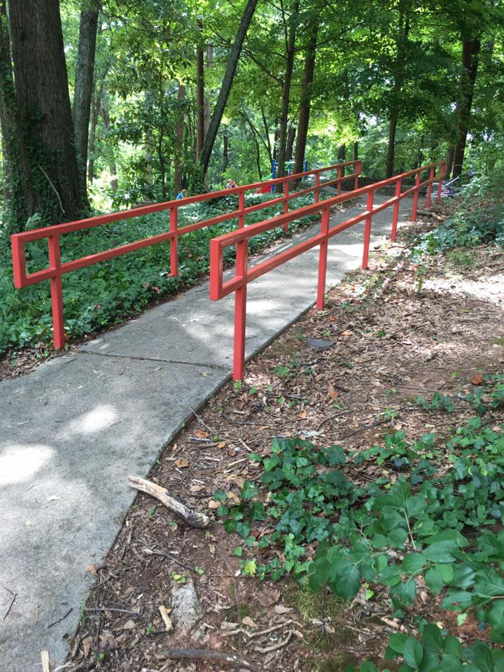 Terrific Tuesday. Thanks to the group that helped complete the removal of invasive ivy along the strip on Deerwood. This now allows that area to have a clear line of site from the street, which makes it much safer. Also, we painted the last bench.