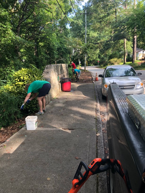 Dearborn Park clean was successful today. At 9am Saturday August 4 many participants came and had a good time. We planted a new Azalea to replace one that didn’t make it. We cut grass, trimmed hedged, removed invasive plants and cleared shrubs that were causing near traffic fatalities on Deerwood.