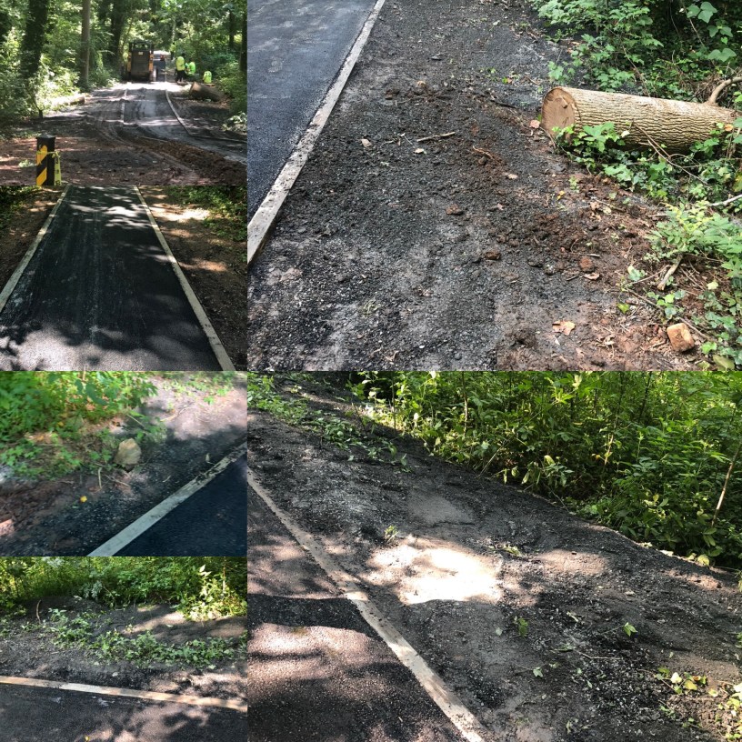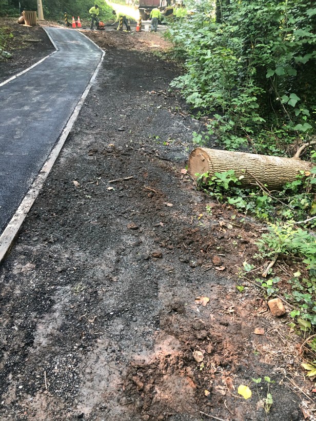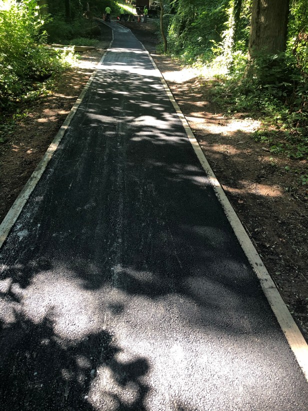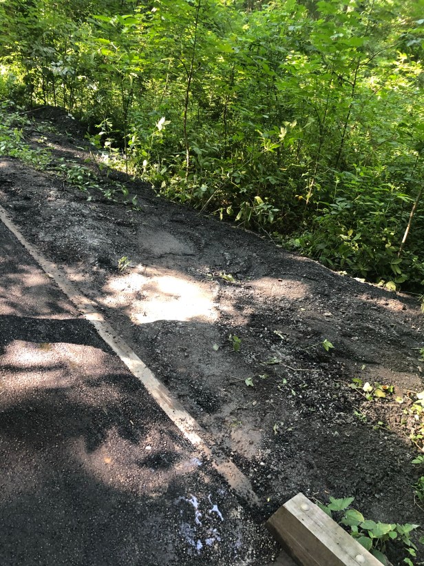 thanks for the update, but Tony Powers did an engineer certify this? It doesn’t seem to to be a soil erosion problem, but a design problem. This was poorly designed to begin with. At least the pervious path was built to absorb some of the water. Now it will quickly glide down the asphalt into the woods creating water logged pockets for mosquitoes. In the photo shown they blocked up a drainage hole.