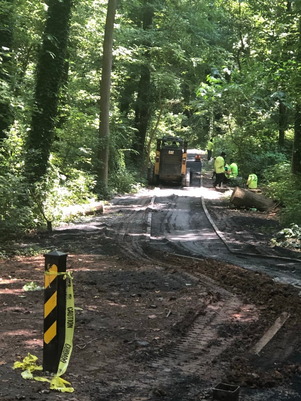 City of Decatur GA- Government paved the pervious path in Dearborn Park. Kevin Polite spoke with the pavers (not shown) and they said they will start on the part at W. Dearborn Circle. This is not good for the park or the environment. Neighbors on W. Dearborn Circle weren’t noticed and weren’t aware that this was occurring.