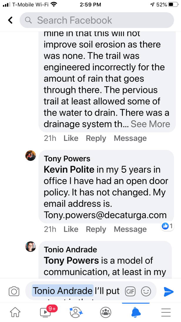 This is the reply I received from Decatur Mayor Pro Tem Tony Powers: