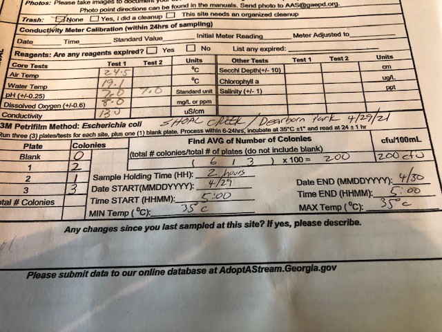 We’d like to do a monthly monitoring but are waiting on DeKalb County to open up for the training course for Adopt a Stream. Georgia Adopt-A-Stream encourages individuals and communities to monitor and/or improve sections of streams, wetlands, lakes or estuaries through several types of involvement. It would be great to monitor the stream after a heavy rain as there is so much construction happening in the area.