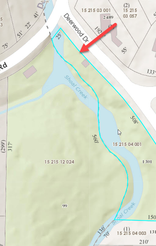 - East Shoal Creek originates near the pond at the old Methodist Children’s Home property (now Legacy Park) and joins the main branch of the creek south of Dearborn Park.