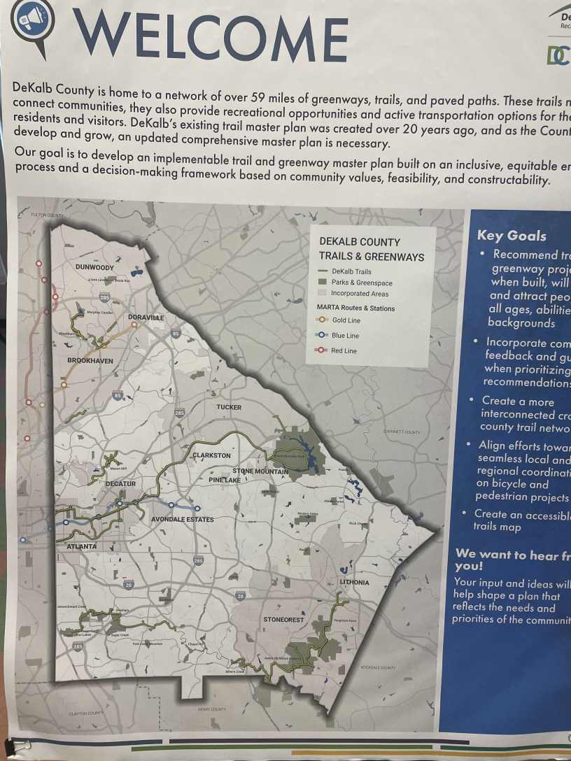 DeKalb’s existing trail master plan was created over 20 years ago, and as the County continues to develop and grow, an updated comprehensive master plan is necessary.