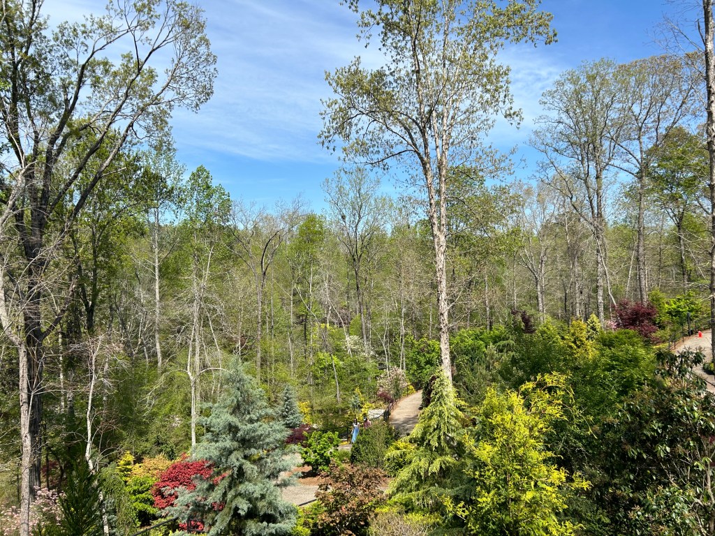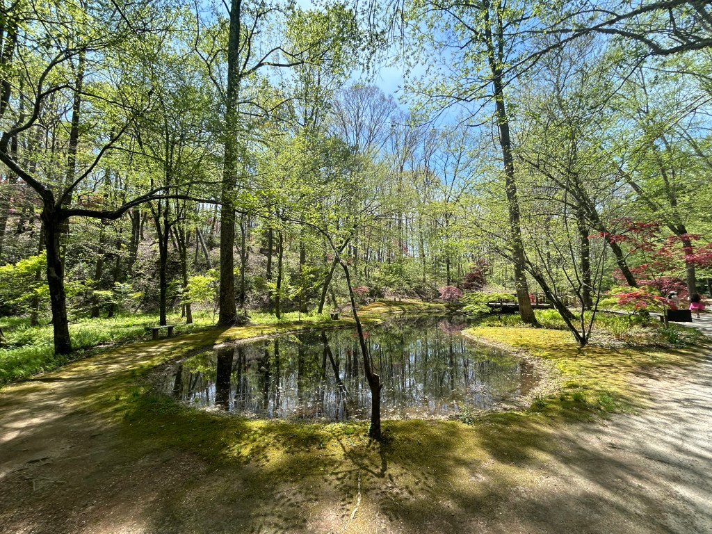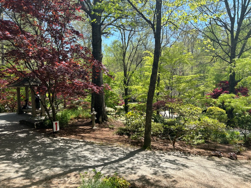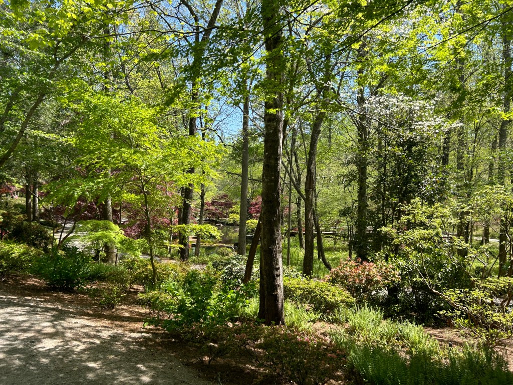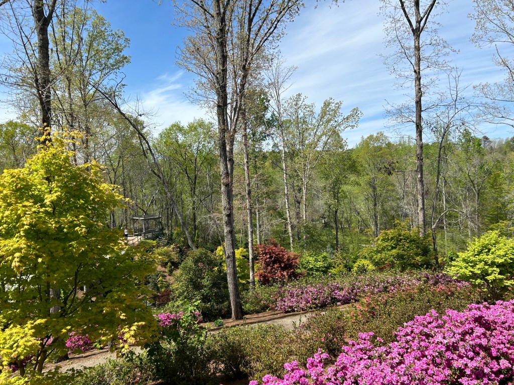 Gibbs Garden boasts an extensive collection of flora, including multiple varieties of Japanese Maples, rhododendrons (including an orange variety), hydrangeas, ferns, cherry blossoms, and, of course, azaleas, among many others. The garden’s design, with its winding 2.5-mile path, invites visitors to stroll leisurely, taking in the lush surroundings. The path is wheelchair and stroller accessible for most of the route, providing an inclusive experience for all visitors.