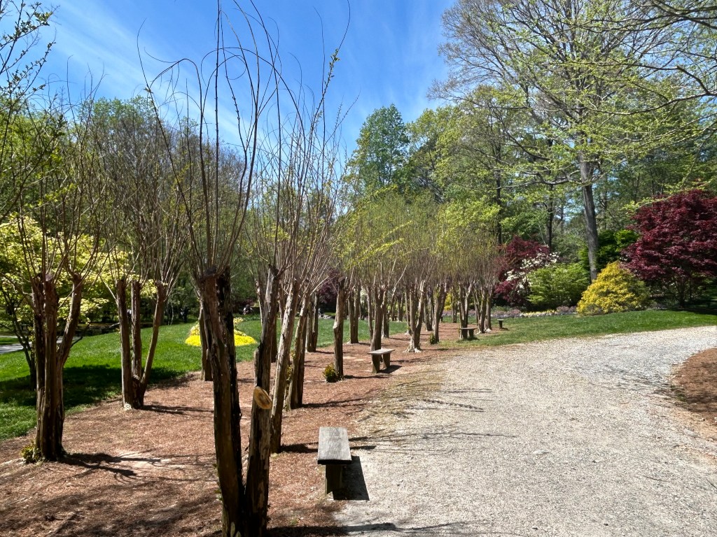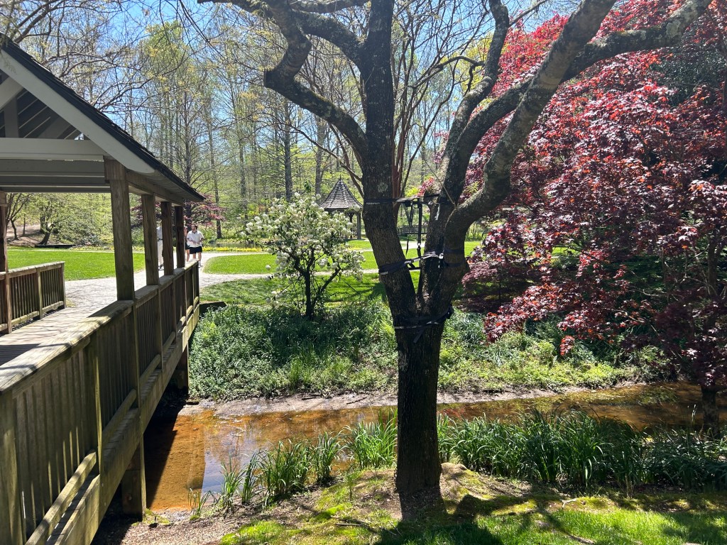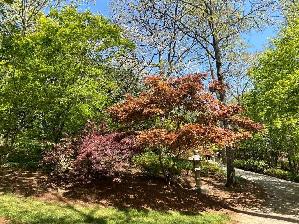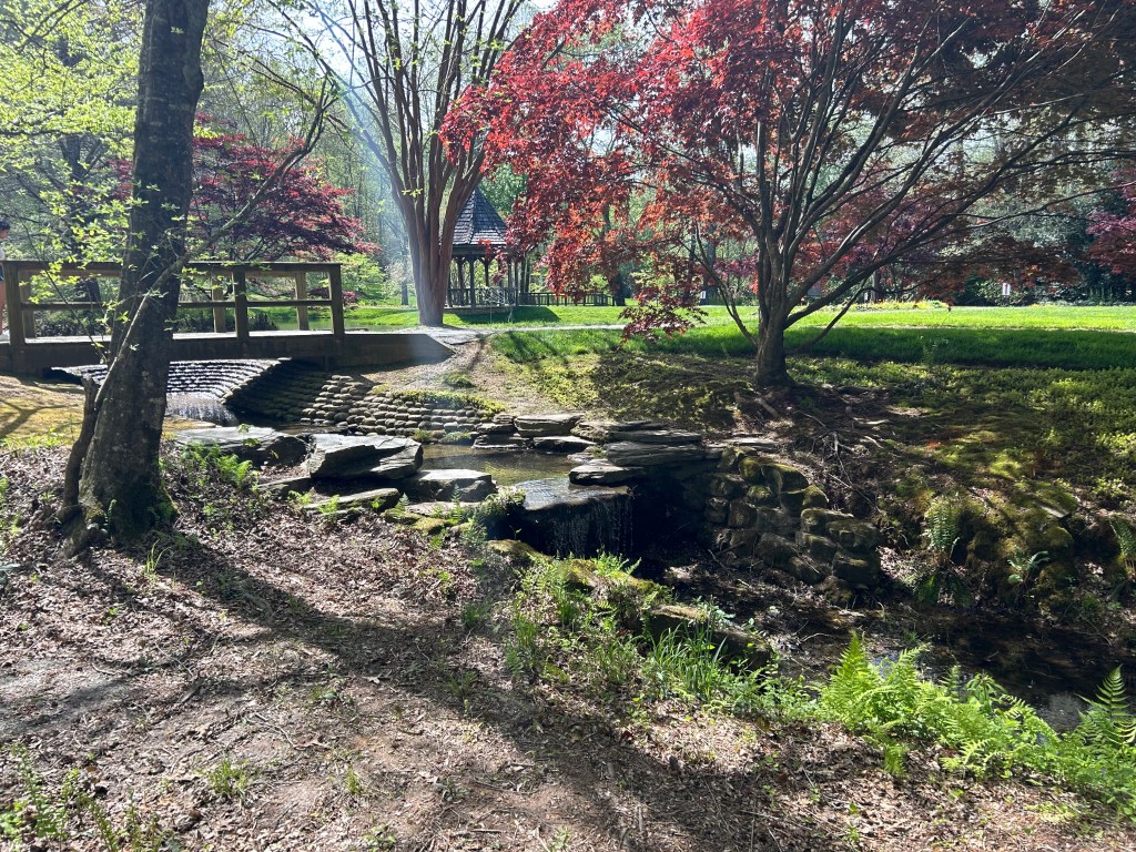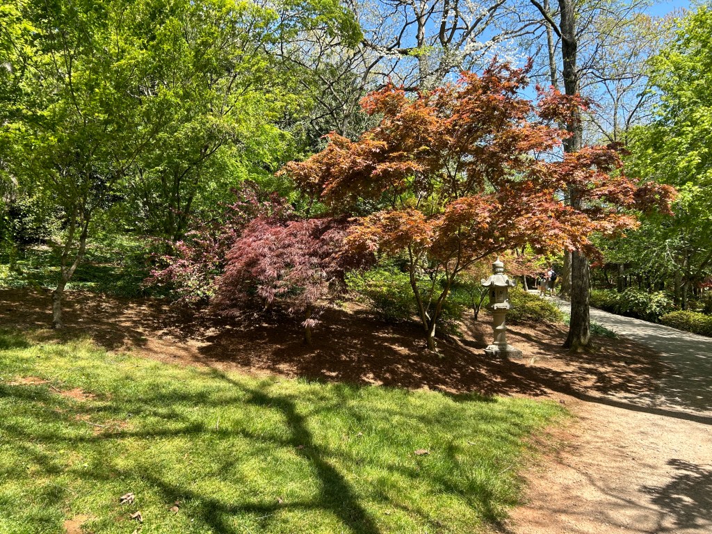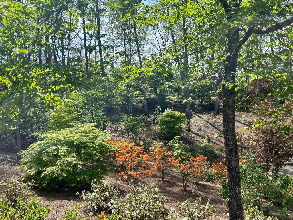 Gibbs Garden boasts an extensive collection of flora, including multiple varieties of Japanese Maples, rhododendrons (including an orange variety), hydrangeas, ferns, cherry blossoms, and, of course, azaleas, among many others. The garden’s design, with its winding 2.5-mile path, invites visitors to stroll leisurely, taking in the lush surroundings. The path is wheelchair and stroller accessible for most of the route, providing an inclusive experience for all visitors.