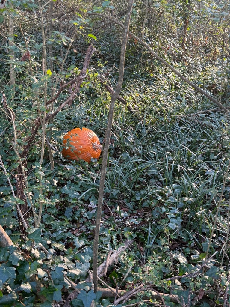 While pumpkins are natural, they are not part of the native ecosystem. Leaving them in the woods can:
